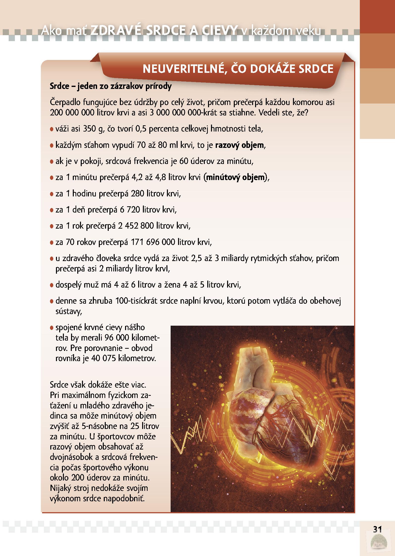 Je všeobecne známe, že len zdravé srdce a systém ciev dáva predpoklad na život bez obmedzení. Naše srdce je jeden veľký, svalnatý orgán, ktorý počas života bez prestania – vo dne i v noci – pumpuje krv naplnenú kyslíkom a živinami cez krvné cievy do telesných tkanív po celom našom tele. Srdce je najťažšie pracujúci sval v ľudskom tele. Za sedem dekád života človeka sa zovrie a vymrští krv viac ako 2,5-miliardykrát. Srdce pracuje bez prestávky. Denne prečerpá asi 7 000 litrov krvi!